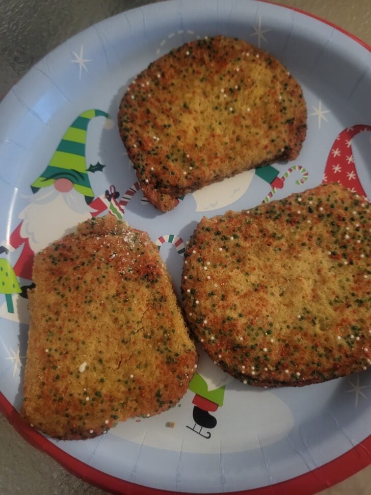 It’s the red and green sprinkles on the outside of the cookies in the pictures. Enjoy!