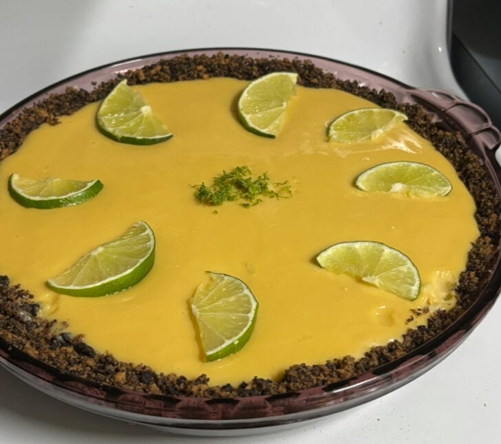 We love key lime pie but my husband is now on a low sodium diet and my recipe called for four egg yolks, along with a different crust. I found this and made a slight change by using a GF, low sodium crust instead of graham cracker. Based on this, the sodium is almost half per piece. Can’t find key limes in my area so I went with bottled key lime juice, which I usually use. Tastes great!