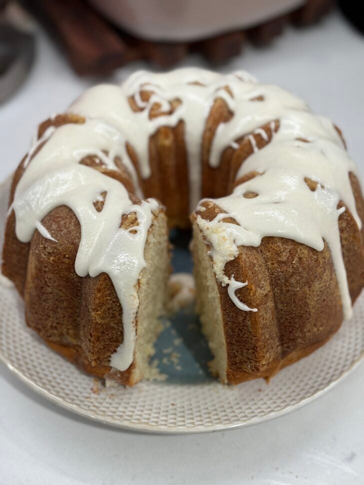 My favorite pound cake to make! The men in our church builds wheelchair ramps for those in need. I always make this cake for them to have as a treat!
