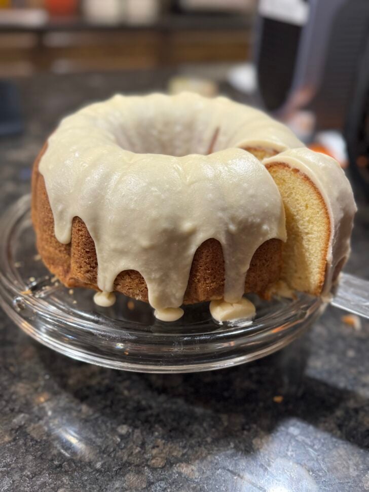 Sooo good. I’ve done this pound cake three times now. First time we had it for dessert when invited to a dinner and twice for home.