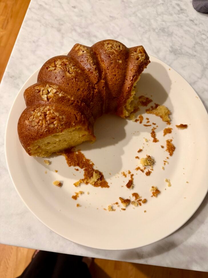 What really makes this delicious, as with any rum cake, is the delicious rum glaze. But somehow, it’s not too rummy. I mean, if rummy cake is your thing, you could always add more rum to make it, you know, more… rummy. But that’s up to you.