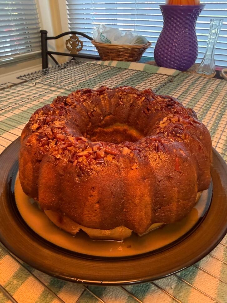 I have been making this cake for years , and I always brought it to any family gathering for Christmas. Everyone always loved it, including my dear Mom, and it’s so easy to make that it’s almost foolproof. One year an aunt of my husband’s requested me to make her 3 of these delicious Rum Cakes, and she gave one of them to her son who was in visiting from Iowa to take home with him.