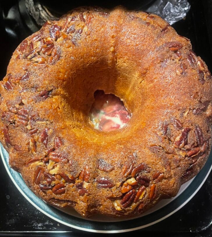 I have been making this rum cake for over 30 yrs and it has continued to be a family hit even grandkids love it !! Early on decided to substitute butterscotch instead of vanilla pudding and makes a much richer flavor for cake. I also dont use nuts because of some diet restrictions and still delicious. However for the first time in 30 yrs the cake stuck to pan following same recipe , turning cake out of pan after glaze has sit 5″. Then I read another recipe that said leave cake in pan for 30″ to cool a bit but cake was stuck even more. I am really at a loss and wonder if nuts help keep cake from sticking but as I said I have been making this rum cake same way without nuts. Hope u have some advice because now I hesitate to bake it for company. Tx for our family favorite dessert.