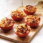 - Place tomato halves on oven rack. Combine butter, breadcrumbs, and cheese. Spoon crumb mixture on top of each tomato half.