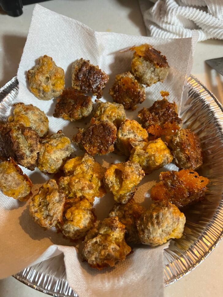 If you’re lucky enough to have leftovers (it doesn’t happen often around here), sausage balls store beautifully. Pop them in an airtight container and refrigerate them for up to 5 days. Reheat them in the oven or air fryer to bring back that crispy outside, or just zap them in the microwave if you’re in a hurry. You can even freeze them! Just place the uncooked sausage balls on a baking sheet and freeze them until they’re solid, then transfer them to a freezer-safe container. When you’re ready to cook, bake them straight from the freezer, adding just a few extra minutes to the bake time.