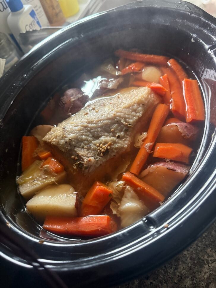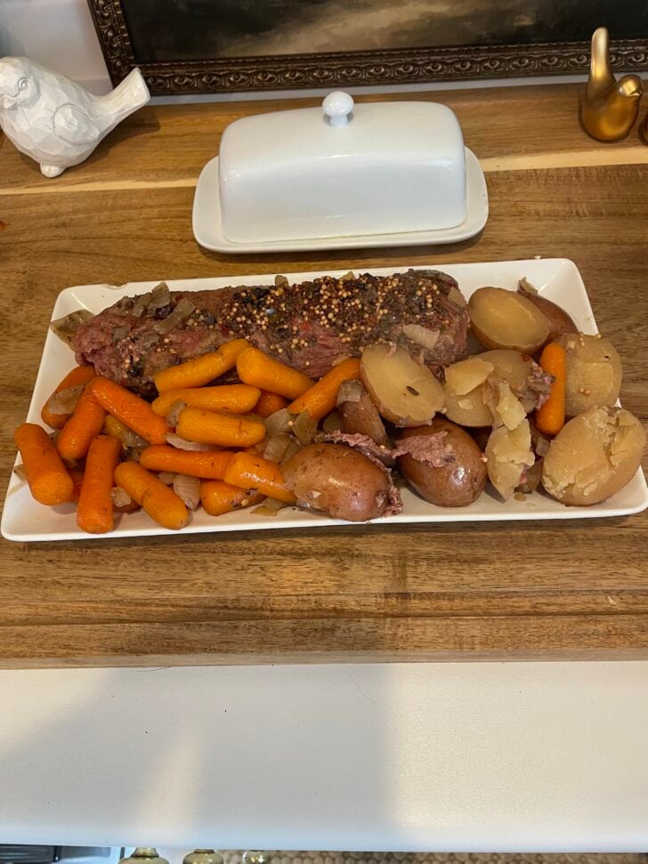 I am making this for my family tomorrow. I plan on prepping the ingredients tonight, then putting everything in the slow cooker in the morning. We like a lot of carrots, so we are gonna use extra of the whole carrots instead of baby ones. I also got some mixed pickling spice for added flavor. We are big flavor peeps! I am excited to see how this turns out!